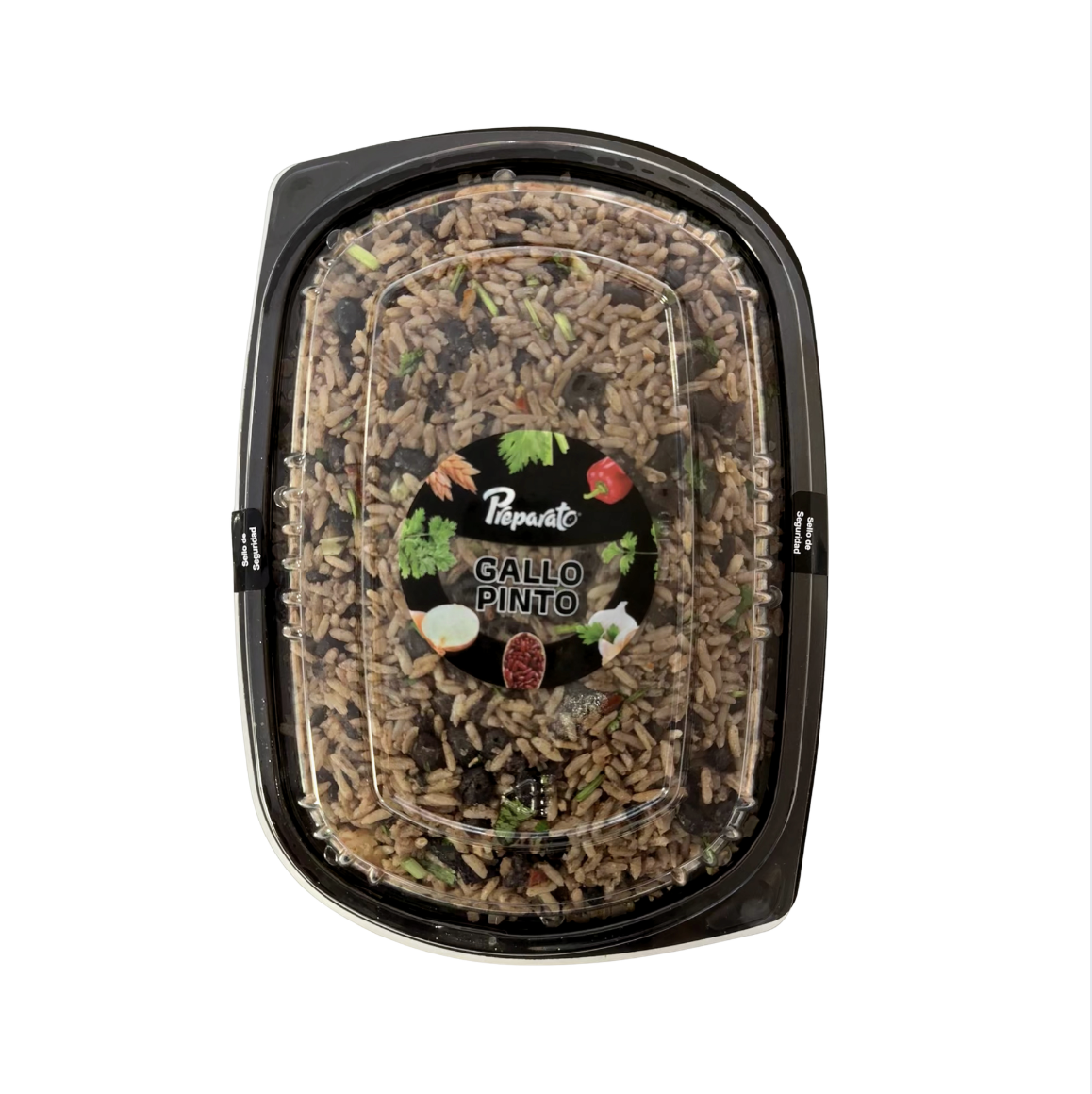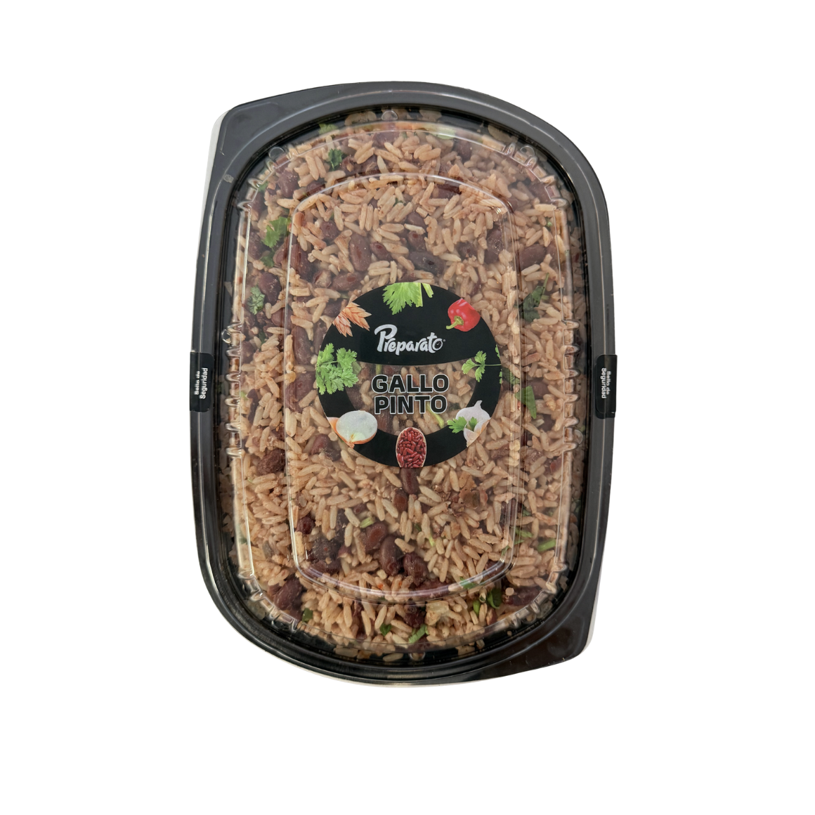 Lista de ingredientes: Arroz, frijoles negros o rojos, salsa de vegetales y condimentos naturales, chile dulce, cebolla, apio, culantro, aceite, ajo y sal